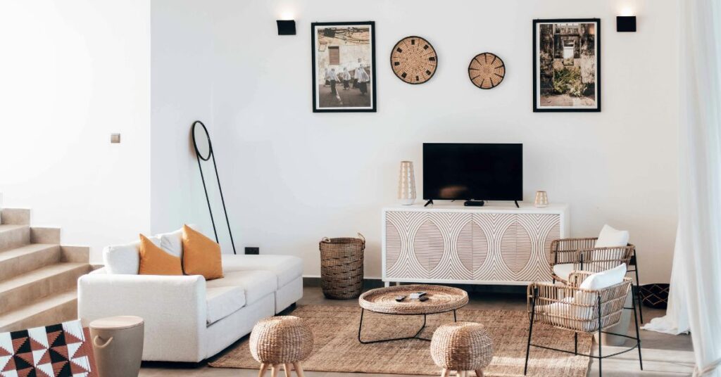 • Handcrafted decor: ceramics, woven baskets, wooden sculptures